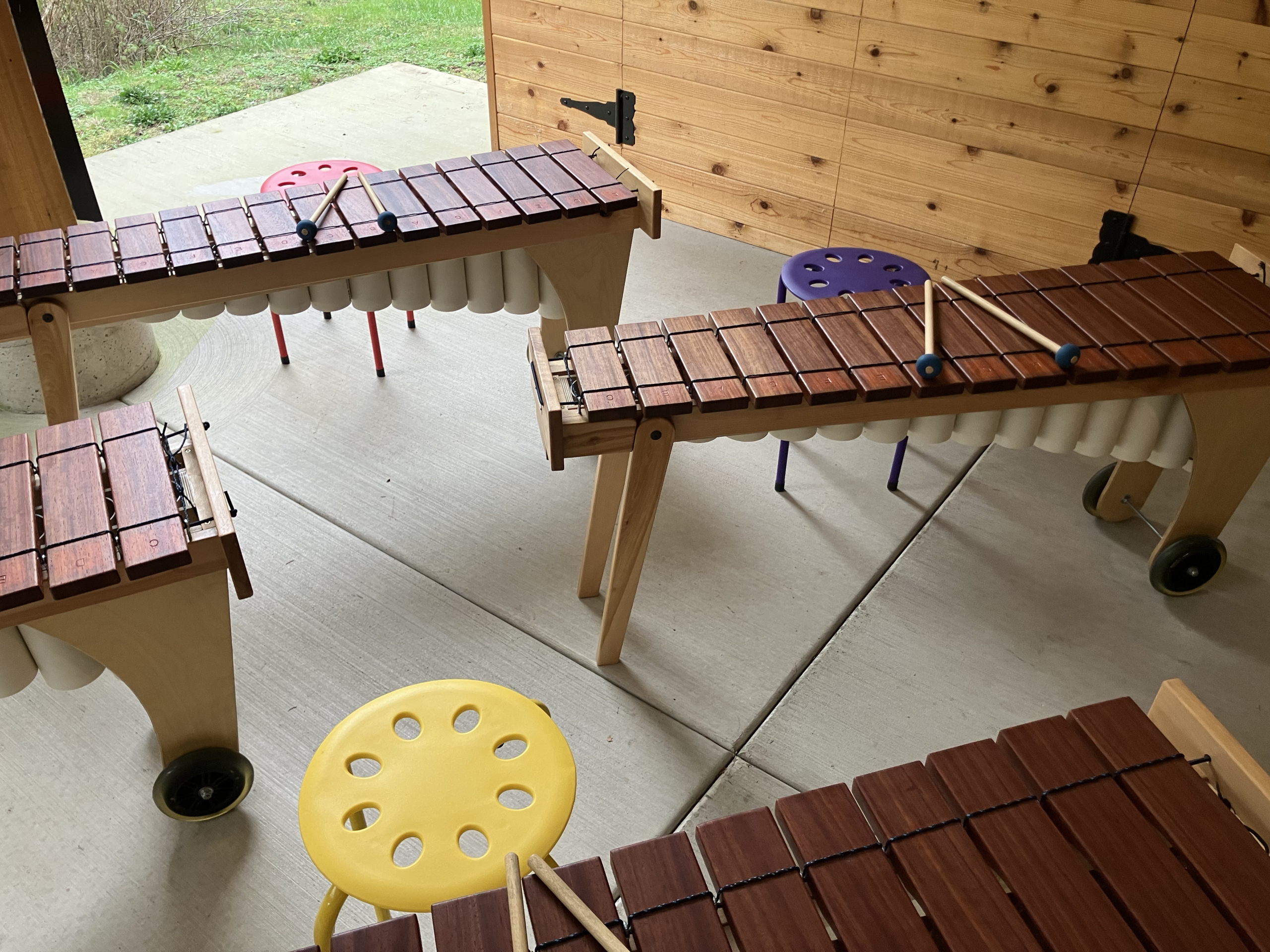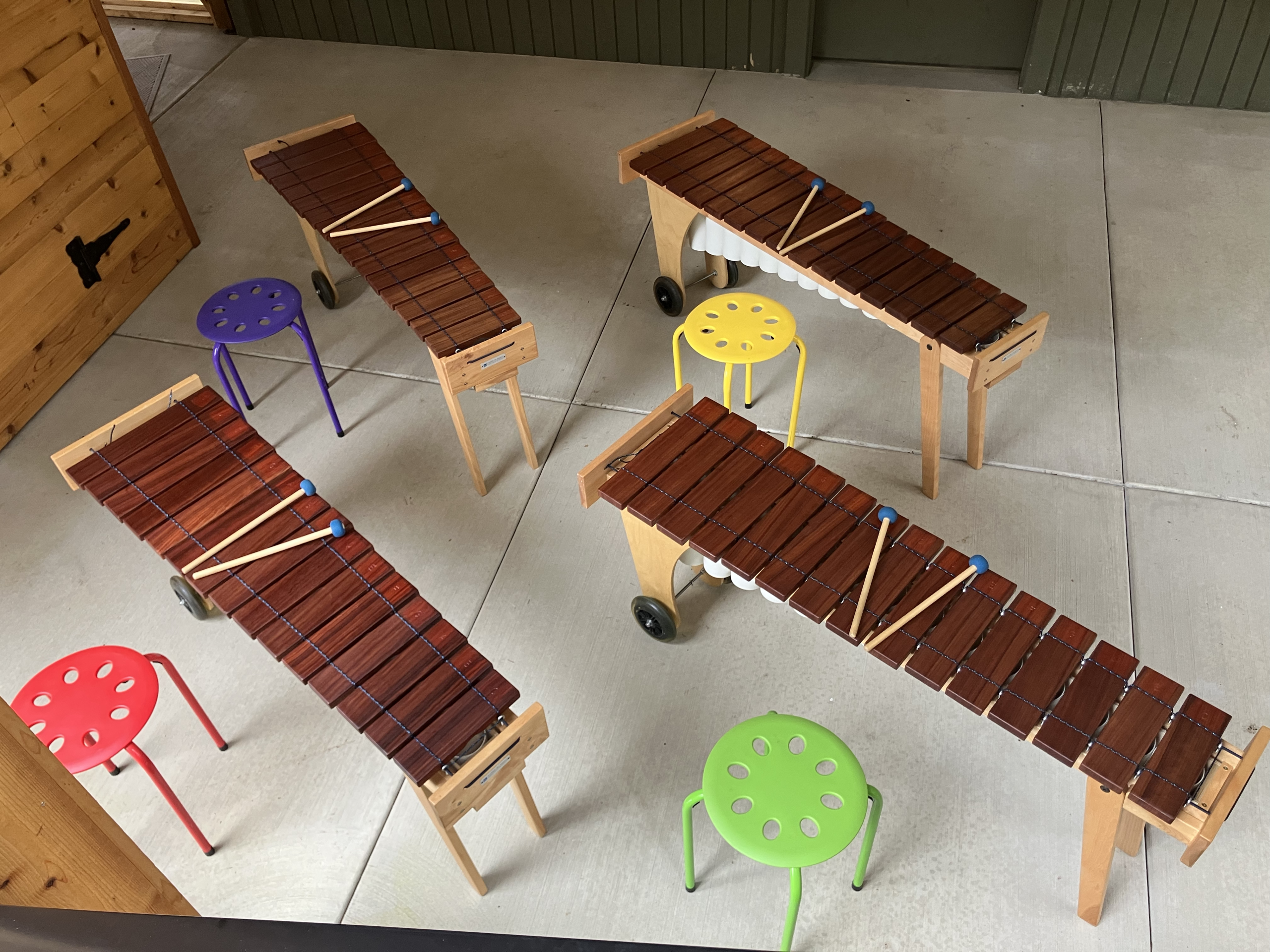 These sopranos, also known as ‘Low Riders’, have a two octave range starting at Middle C. Frames have wheels designed for mobility and upright storage.